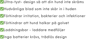 Spara dig själv det tidskävande och kostsamma besöket hos hundfrisören varje månad. Med vår trimmer kan du ta hand om dina tassar från bekvämligheten av ditt eget hem